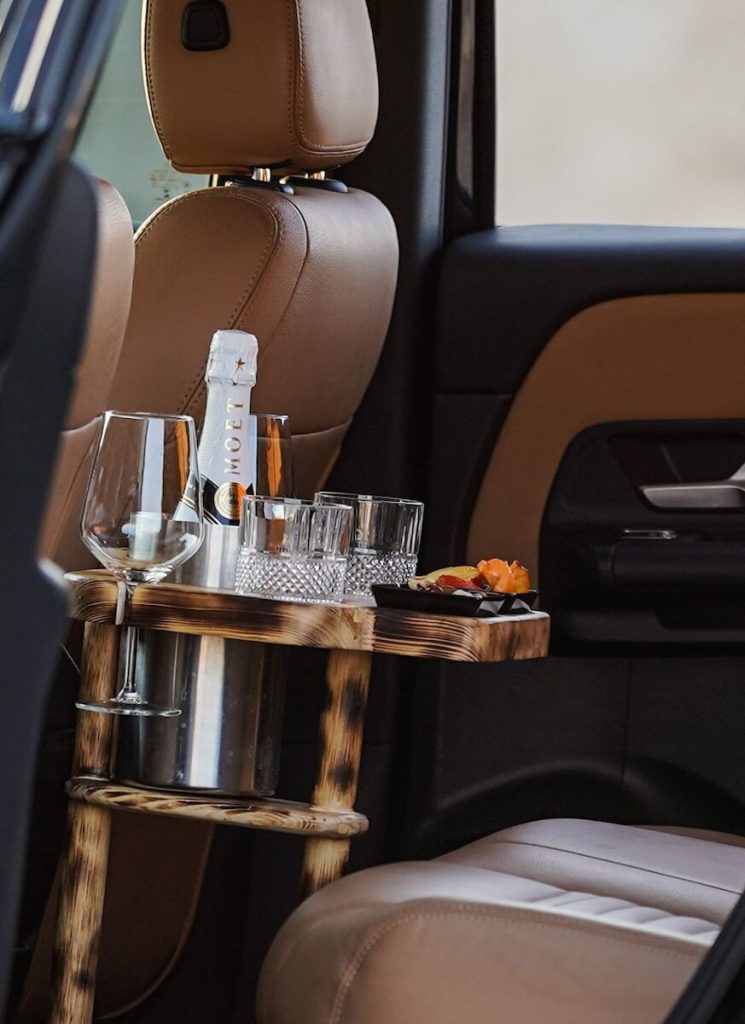 - Drinks and treats inside the car